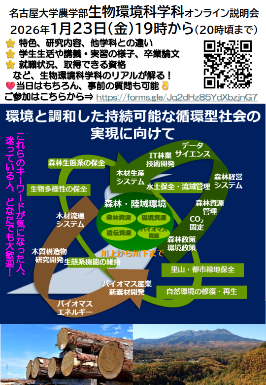 名古屋大学農学部オンライン学科説明会のお知らせ|名古屋大学農学部
